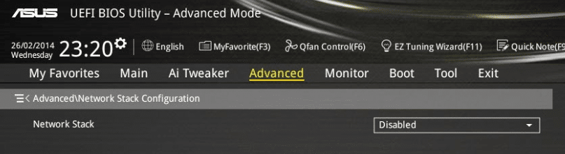 - Kolejnym elementem jest włączenie stosu sieciowego. Kiedy ustawimy opcję Network stack na enable będziemy mogli aktywować kolejną funkcje